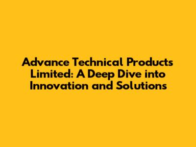 Hey guys! Let's dive deep into Advance Technical Products Limited! This is a company that has been making waves in the tech world. We will explore their products, services, and the impact they're making. Get ready for a fascinating journey into the heart of technological advancement!