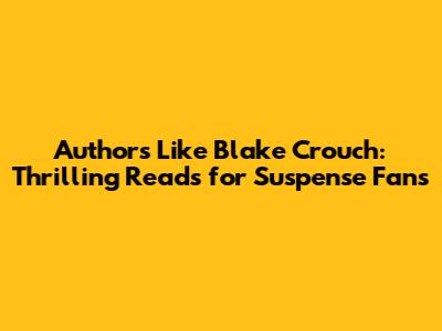 Authors Like Blake Crouch: Thrilling Reads For Suspense Fans