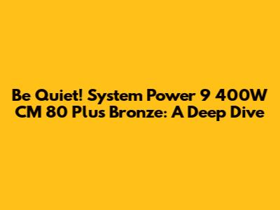 Hey guys! Today, we're diving deep into the Be Quiet! System Power 9 400W CM 80 Plus Bronze power supply. If you're building a budget-friendly PC or need a reliable PSU for a mid-range system, this could be a fantastic option. We'll break down everything you need to know, from its features and performance to its pros and cons, so you can make an informed decision.