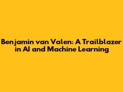 Benjamin Van Valen: Innovator In AI And Machine Learning