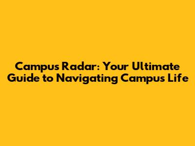 Campus Radar: Your Ultimate Guide To Navigating Campus Life