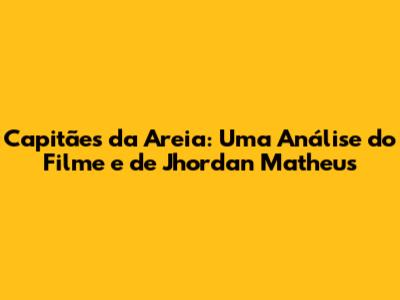 Capitães Da Areia: Uma Análise Do Filme E De Jhordan Matheus