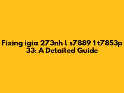 Fixing Igia 273nh L S7889 1 T7853p 33: A Detailed Guide