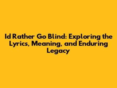 • Q: What is the meaning of "I'd Rather Go Blind"? A: The song is about the depth of love and the fear of losing it. The singer would rather go blind than see her lover leave. It is an honest expression of vulnerability and emotional intensity.