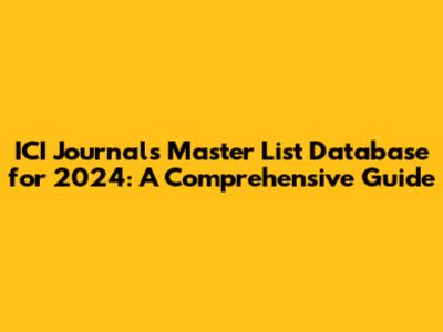 Hey guys! Are you looking for a comprehensive guide to the ICI Journals Master List Database for 2024? You've come to the right place. This article will provide you with all the information you need to navigate and utilize the ICI Journals Master List effectively. We'll explore what the ICI Journals Master List is, why it's important, and how to use it to your advantage in 2024. So, let's dive in!