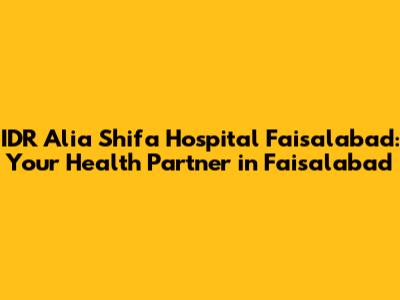 Are you looking for reliable healthcare in Faisalabad? Look no further! IDR Alia Shifa Hospital is here to provide you and your family with top-notch medical services. Let's dive into what makes this hospital a great choice for your healthcare needs.