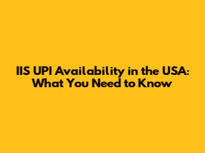 IIS UPI Availability In The USA: What You Need To Know