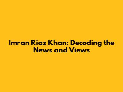 Imran Riaz Khan: Decoding The News And Views
