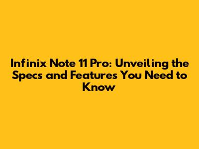 Infinix Note 11 Pro: Specs, Features & More!
