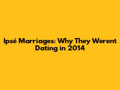 Ipsé Marriages: Why They Weren't Dating In 2014