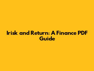 Irisk And Return: A Finance PDF Guide