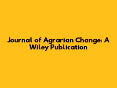 Journal Of Agrarian Change: A Wiley Publication