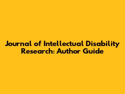 Journal Of Intellectual Disability Research: Author Guide