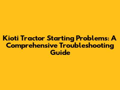Kioti Tractor Starting Problems: Troubleshooting Guide