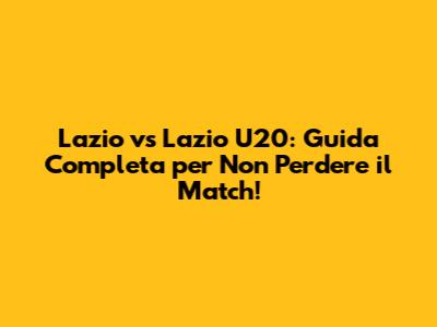 Lazio Vs Lazio U20: Guida Completa Per Non Perdere Il Match!
