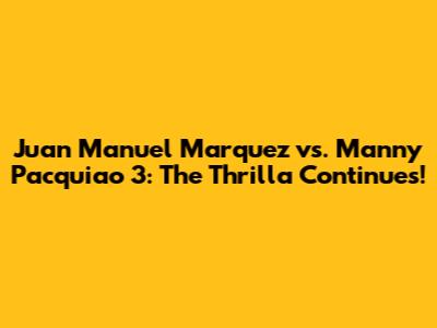 Marquez Vs Pacquiao 3: The Thrilla Continues!