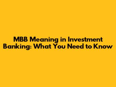 MBB Meaning In Investment Banking Explained