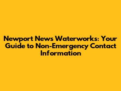 Newport News Waterworks: Non-Emergency Contact Info