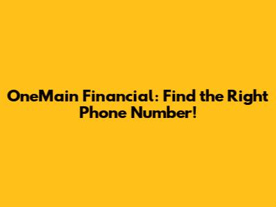 OneMain Financial: Find The Right Phone Number!