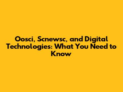 Oosci, Scnewsc, And Digital Technologies: What You Need To Know