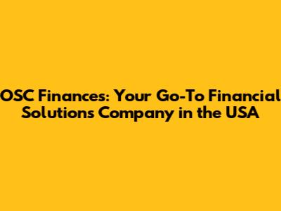 OSC Finances: Top Financial Solutions In The USA