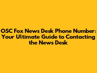 Unveiling the OSC Fox News Desk Phone Number: Your Direct Line to News