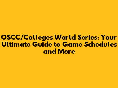 Understanding the OSCC/Colleges World Series Schedule: Key Components