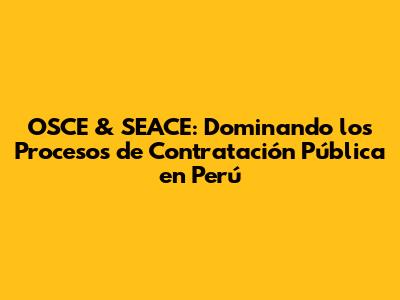 OSCE & SEACE: Guía Completa Para Contrataciones Públicas En Perú