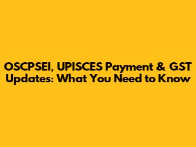 OSCPSEI, UPISCES Payment & GST Updates: What You Need To Know