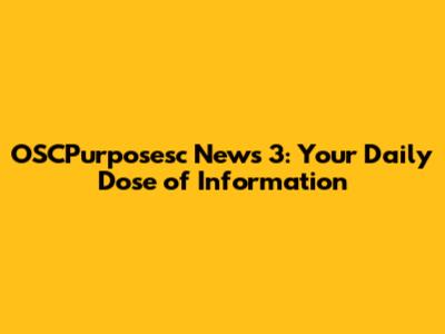OSCPurposesc News 3: What You Need To Know Today