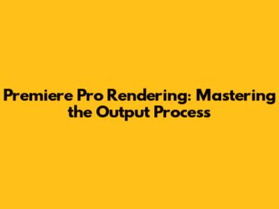 Premiere Pro Rendering: Mastering The Output Process