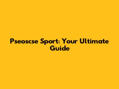 Pseoscse Sport: Your Ultimate Guide