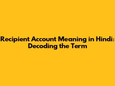 Recipient Account Meaning In Hindi: A Complete Guide