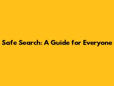 Safe Search: A Guide For Everyone