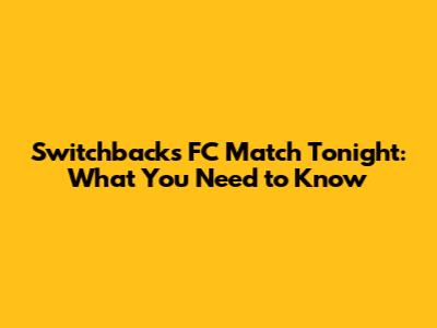 Switchbacks FC Match Tonight: What You Need To Know