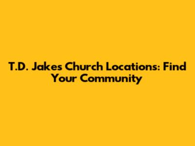 T.D. Jakes Church Locations: Find Your Community