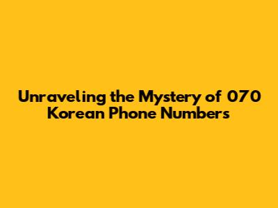Hey guys! Let's dive deep into the world of 070 Korean phone numbers. If you've ever received a call from a 070 number or seen it pop up on your caller ID, you're probably wondering what's going on. Is it a scam? Is it legitimate? Well, stick around because we're going to break it all down for you, making sure you're in the know about these specific South Korean numbers. Understanding these numbers can save you a lot of hassle and help you identify legitimate communications versus potential scams. We'll explore their origin, purpose, and how to handle them, so by the end of this, you'll be a 070 number expert!