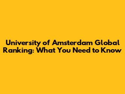 University Of Amsterdam Global Ranking: What You Need To Know