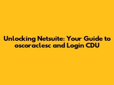 Unlocking Netsuite: Your Guide To Oscoraclesc And Login CDU