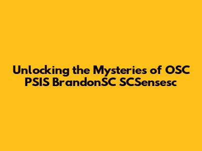 Unlocking The Mysteries Of OSC PSIS BrandonSC SCSensesc