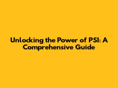 Unlocking The Power Of PSI: A Comprehensive Guide