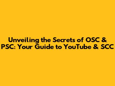 Unveiling The Secrets Of OSC & PSC: Your Guide To YouTube & SCC