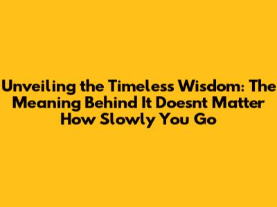 Unveiling The Timeless Wisdom: The Meaning Behind 'It Doesn't Matter How Slowly You Go'