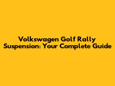 Volkswagen Golf Rally Suspension: Ultimate Guide
